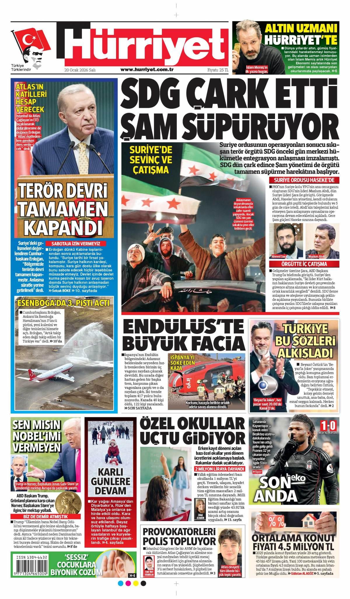 Hürriyet Gazetesi 21 Ocak 2026 Günü Manşeti