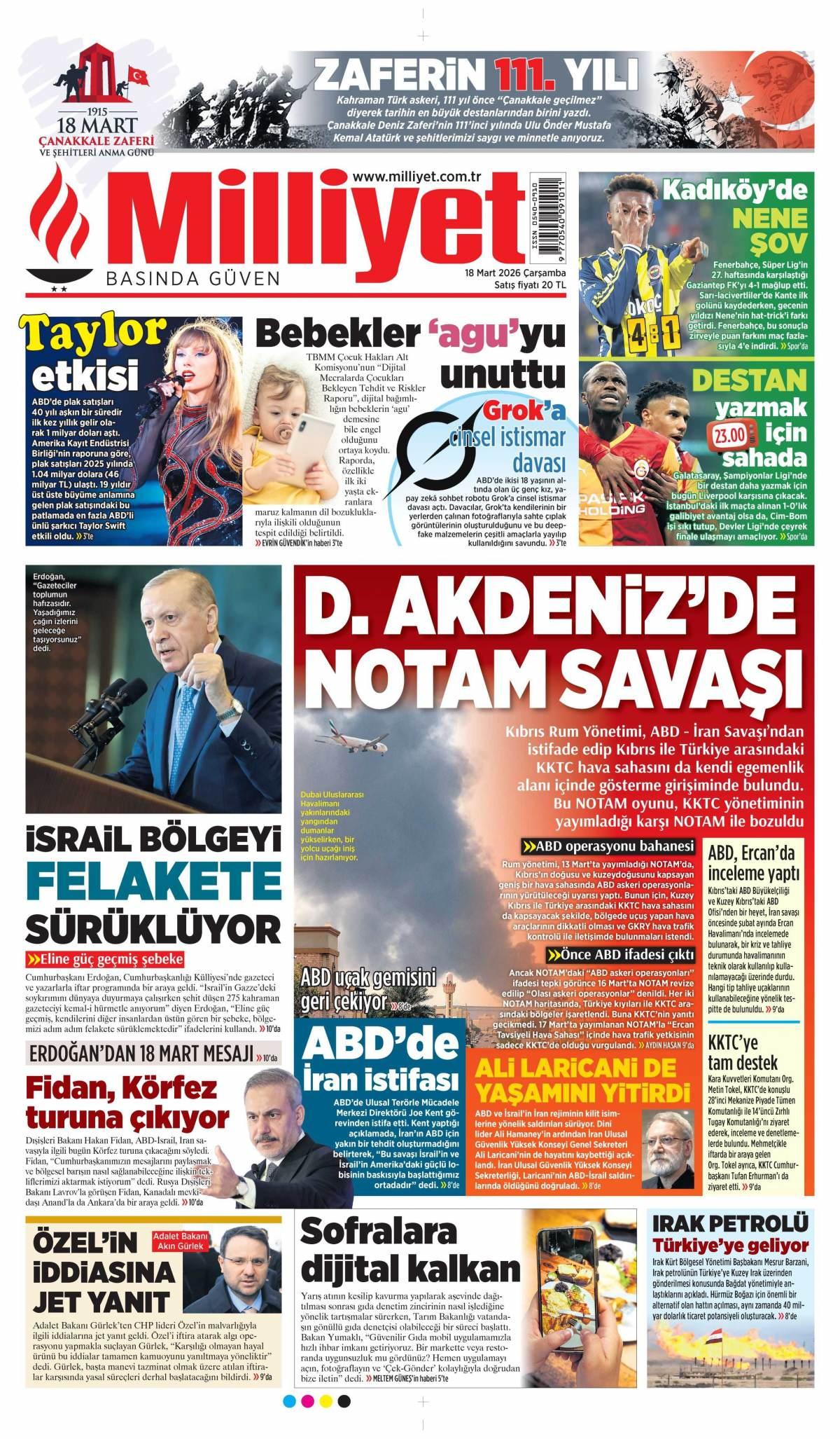Milliyet Gazetesi 19 Mart 2026 Günü Manşeti