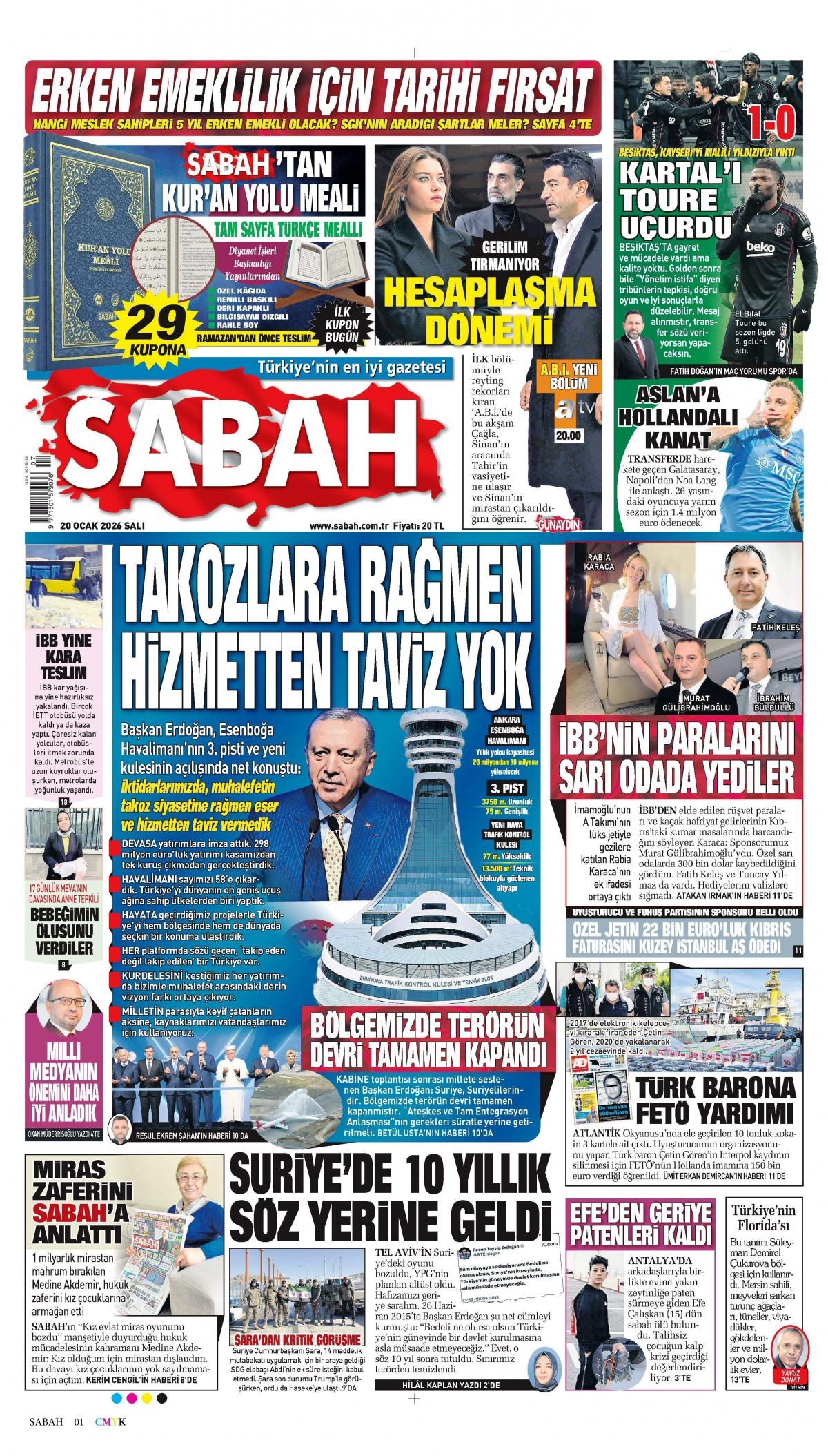 Sabah Gazetesi 21 Ocak 2026 Günü Manşeti