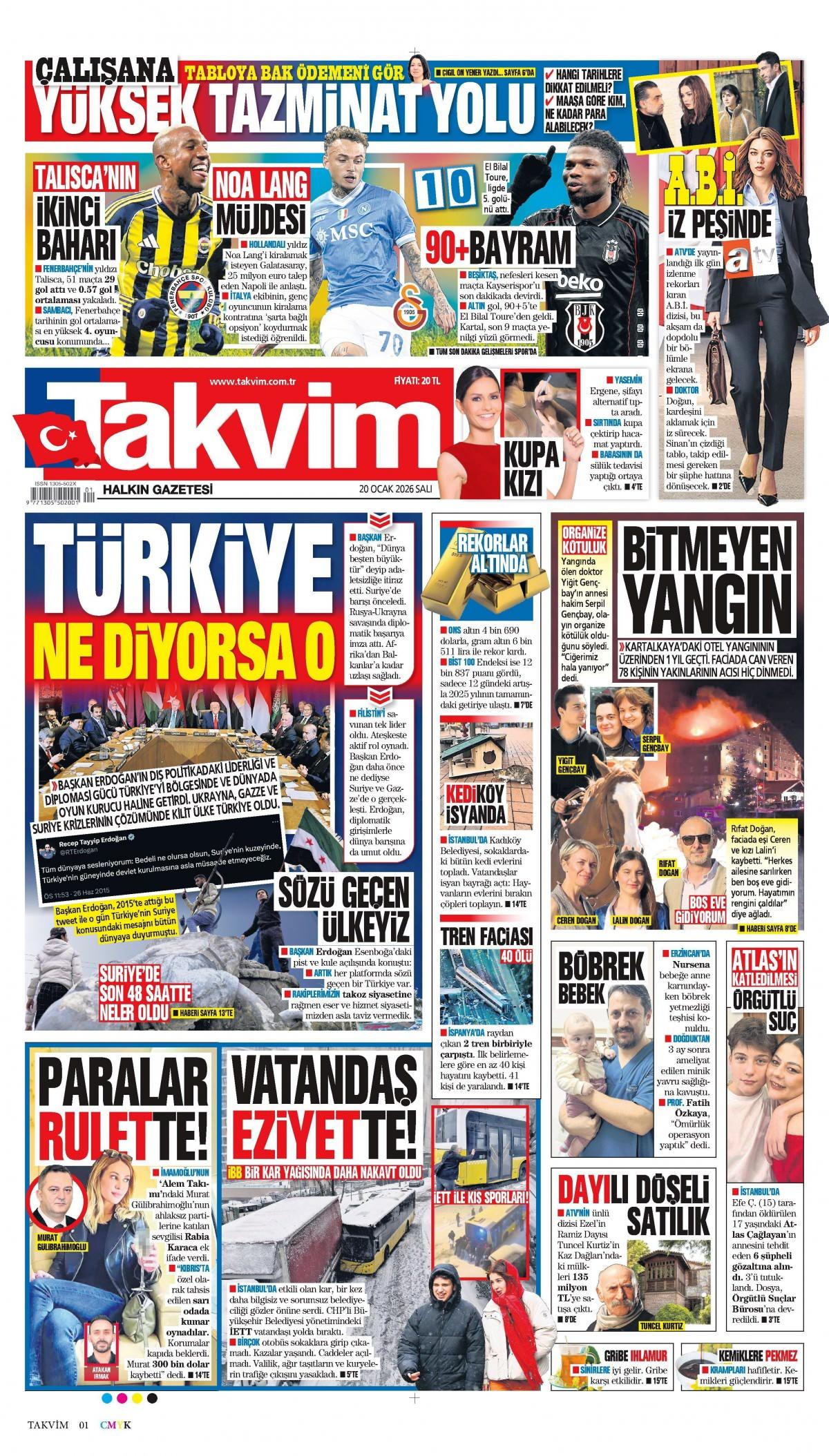 Takvim Gazetesi 21 Ocak 2026 Günü Manşeti