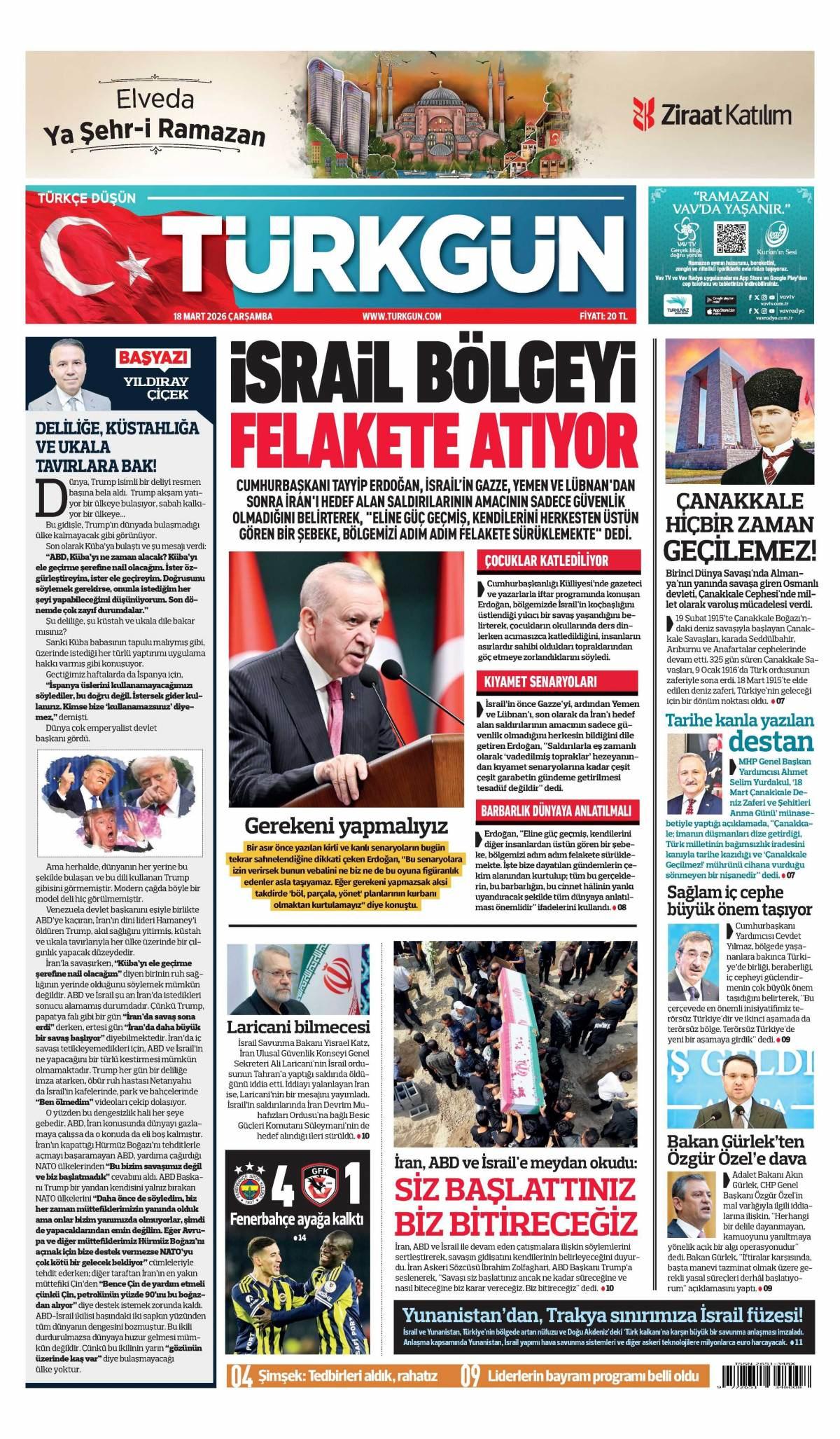 Türkgün Gazetesi 19 Mart 2026 Günü Manşeti