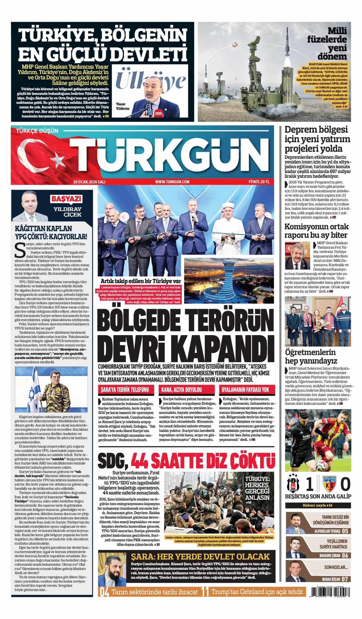Türkgün Gazetesi 21 Ocak 2026 Günü Manşeti