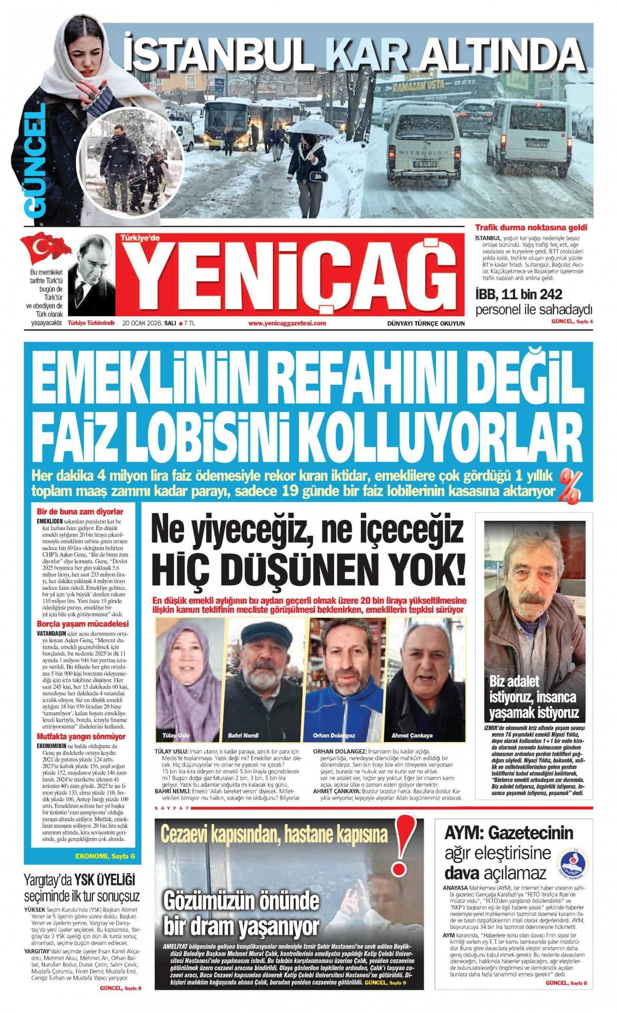 Yeni Çağ Gazetesi 21 Ocak 2026 Günü Manşeti